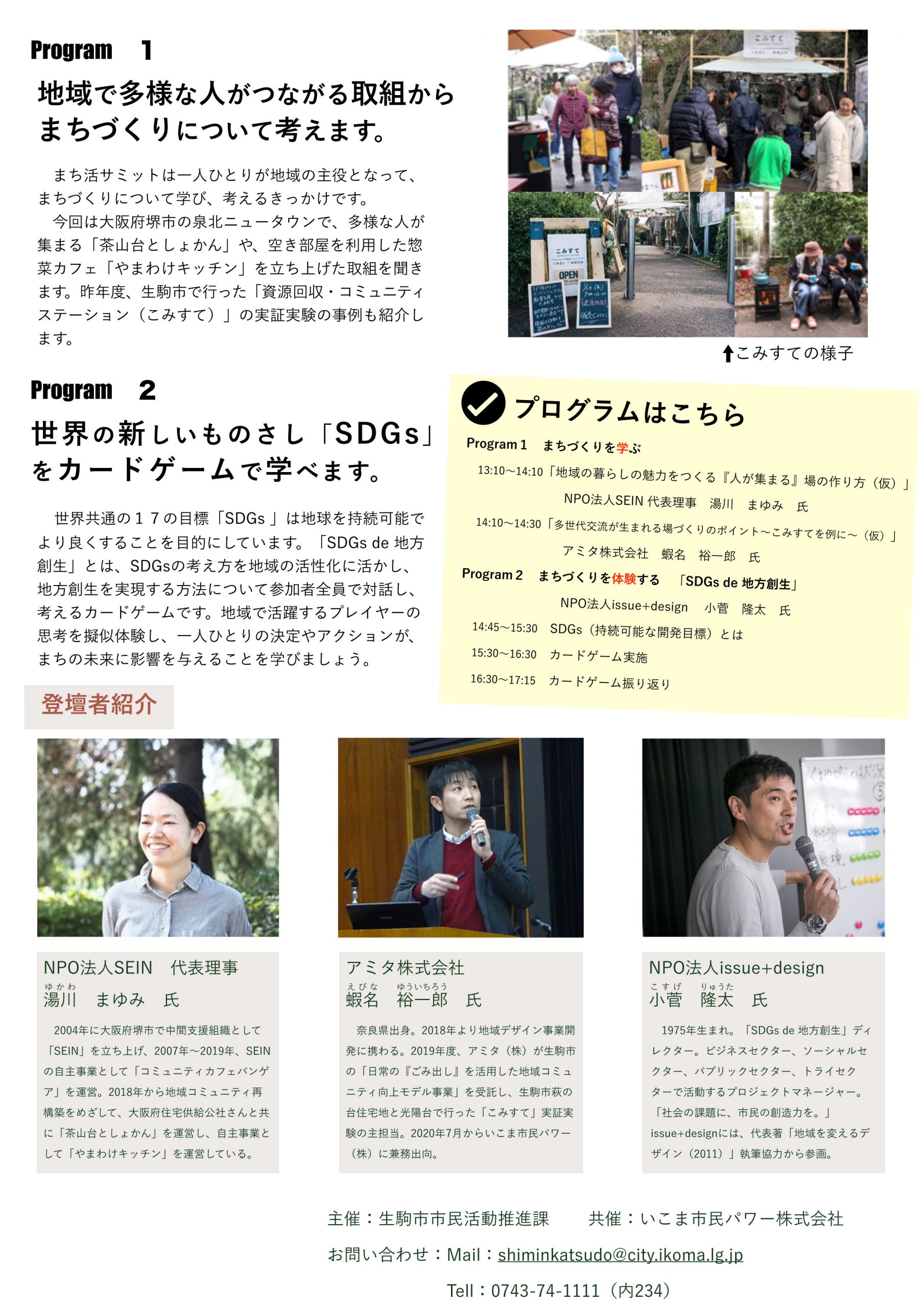 まちづくりやSDGsに関心のある生駒市内在住の方、ぜひお越しください。